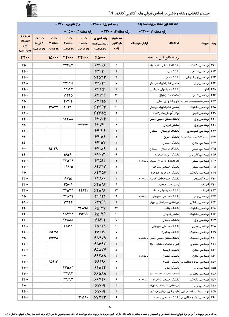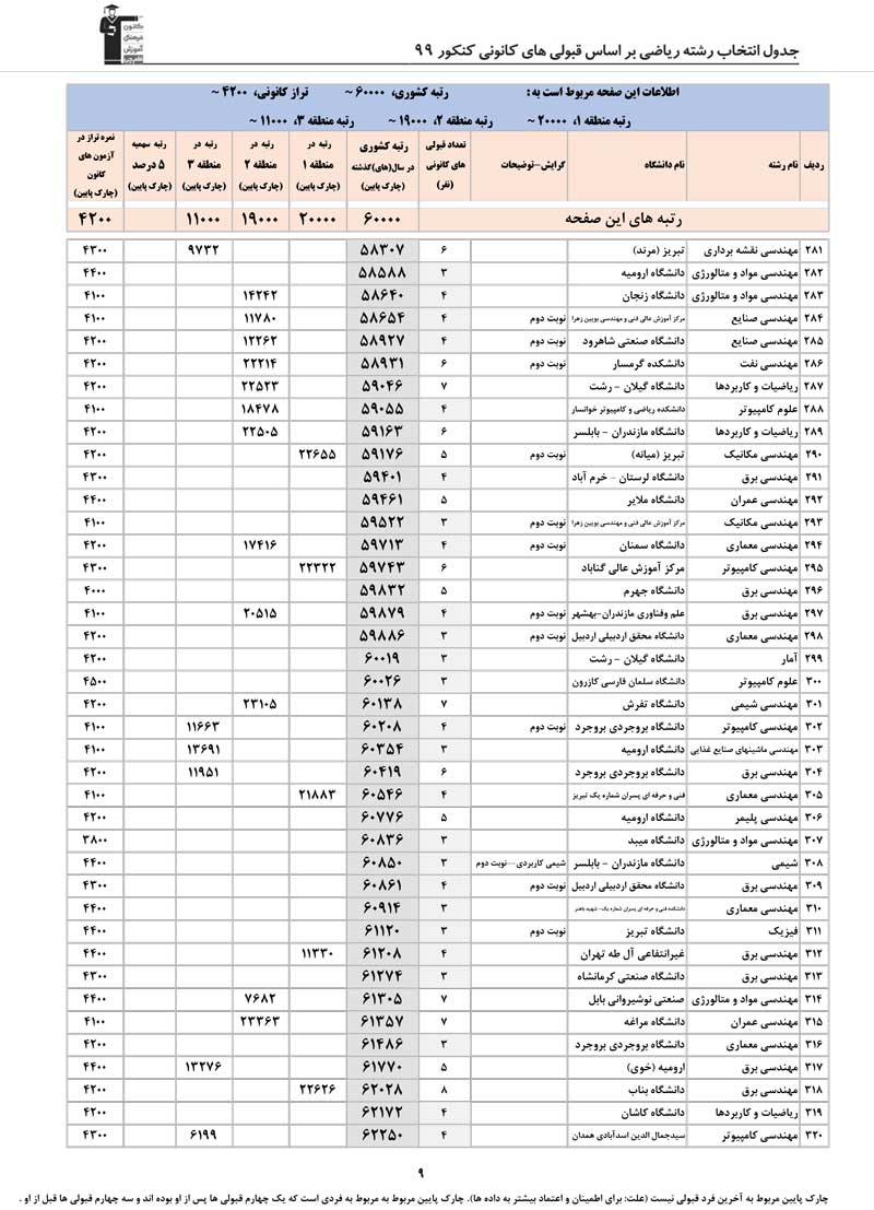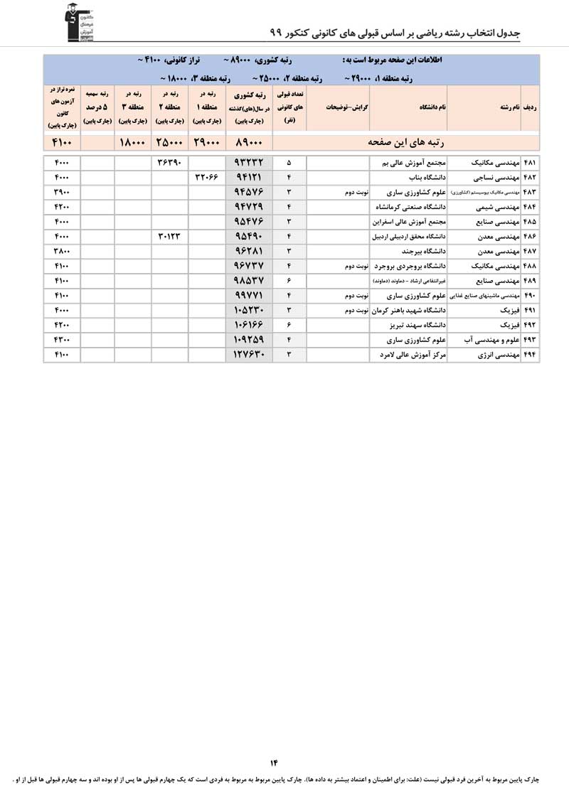 با این جدول ها به سادگی می توانید انتخاب رشته خود را اغاز کنید.