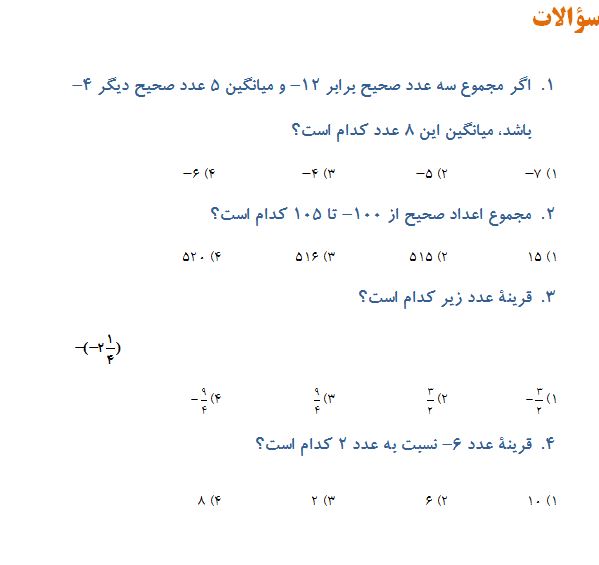 این بخش راجع به جمع و تفریق و ضرب و تقسیم اعداد صحیح صحبت می کند.