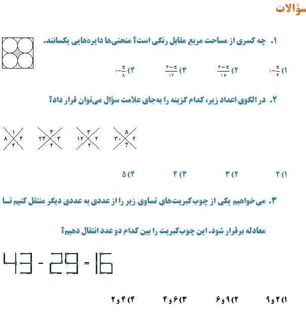 در آمونهای تابستان ده سوال انتهای دفترچه آزمون نیز به همین مبحث می پردازد.ما در این بخش با جند سوال هوش ریاضی آشنا می شویم.