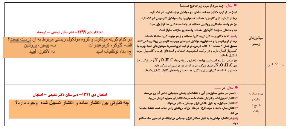 مباحث نگاه به آینده آزمون 15 مرداد دهم تجربی به همراه مثال