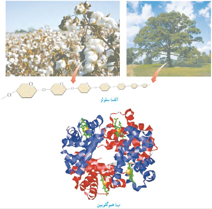 مثال: سلولز، نشاسته، گوشت، پشم، ابریشم و پنبه