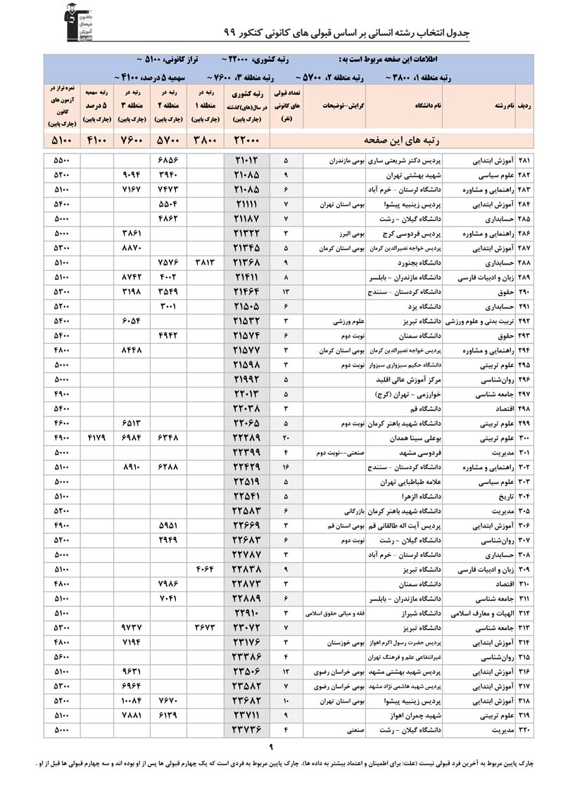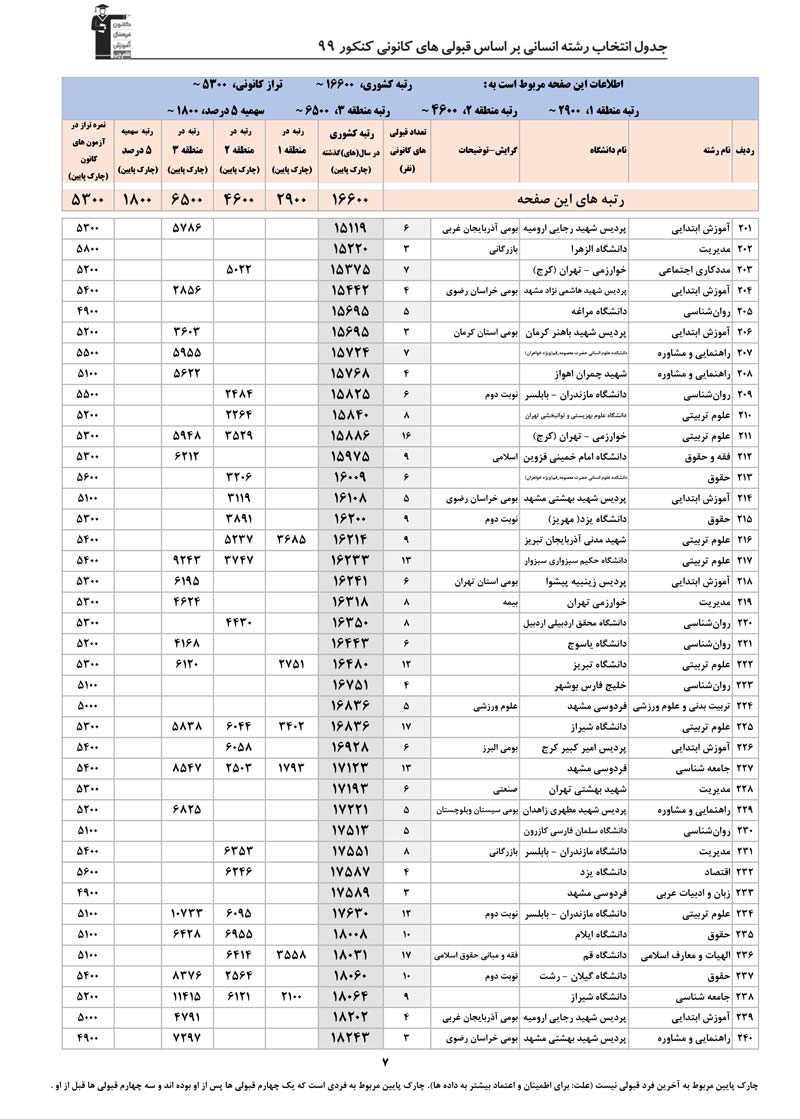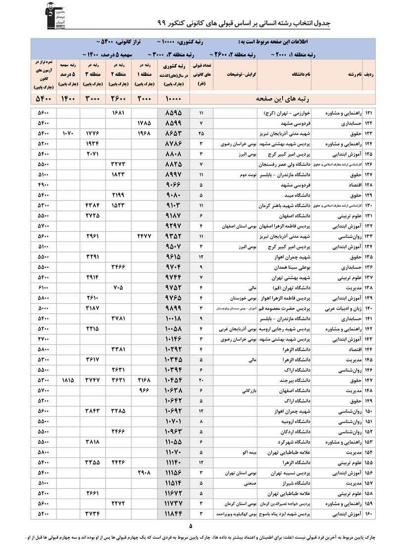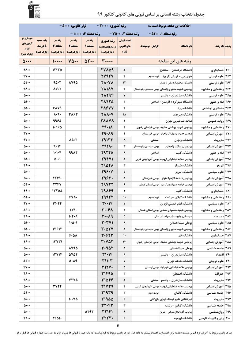 دانلود دفترچه انتخاب رشته انسانی : جدول ترازهای بالاتر از 5000