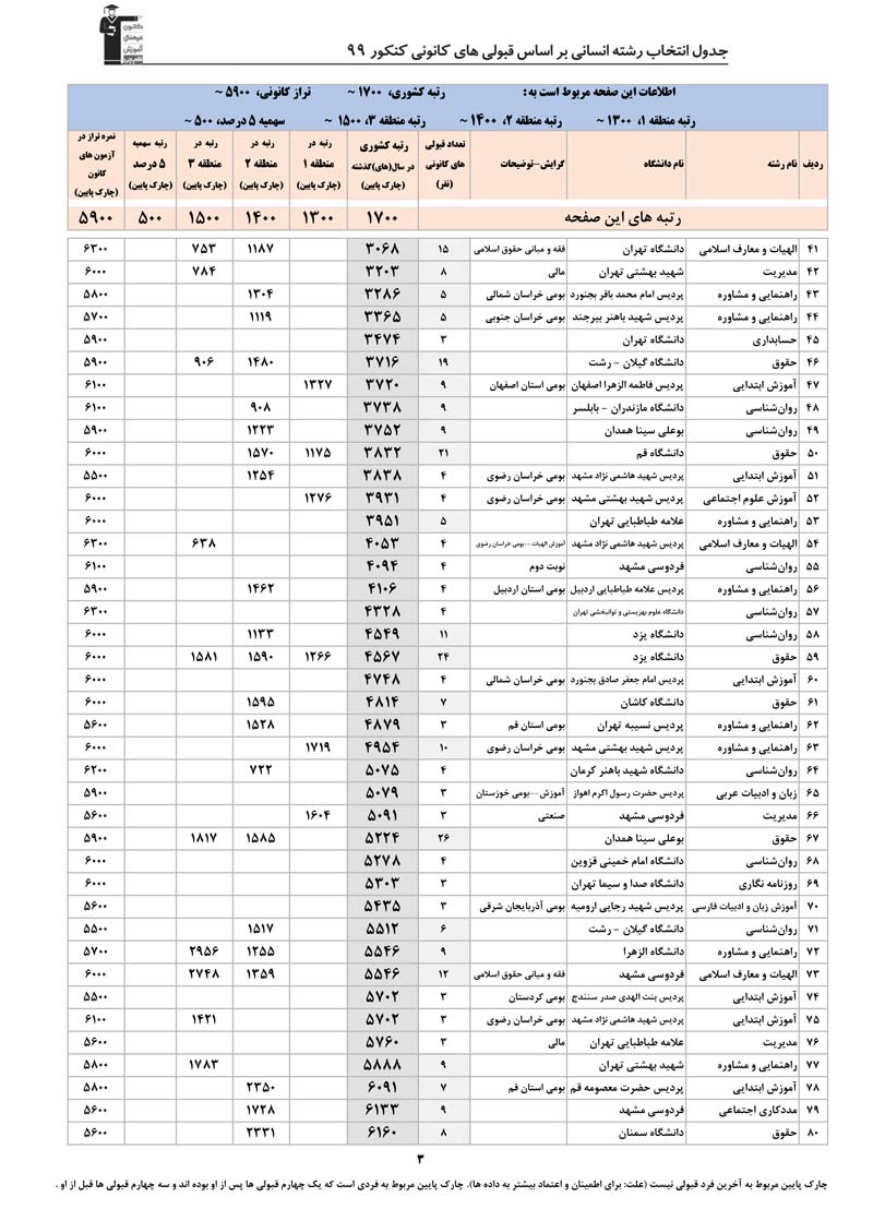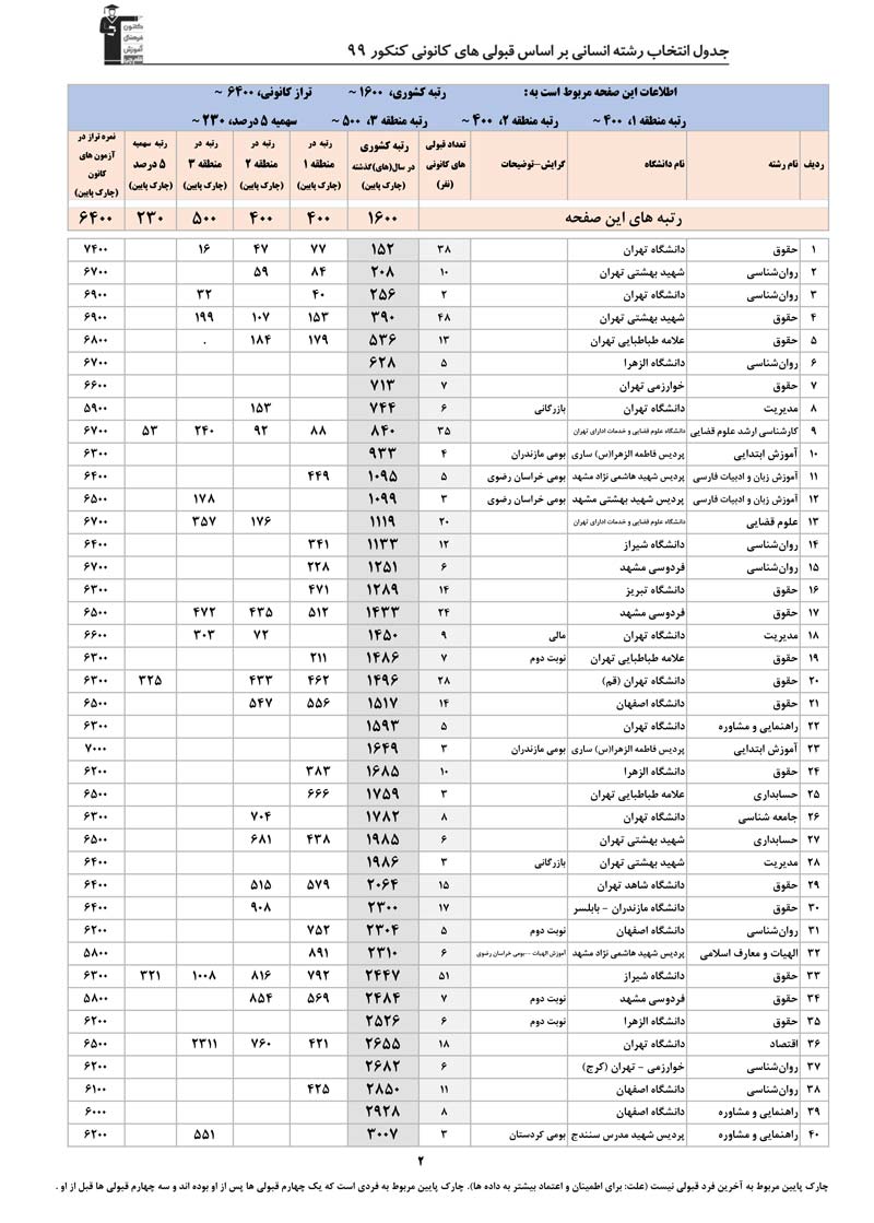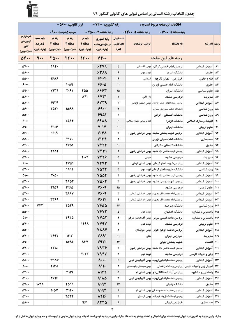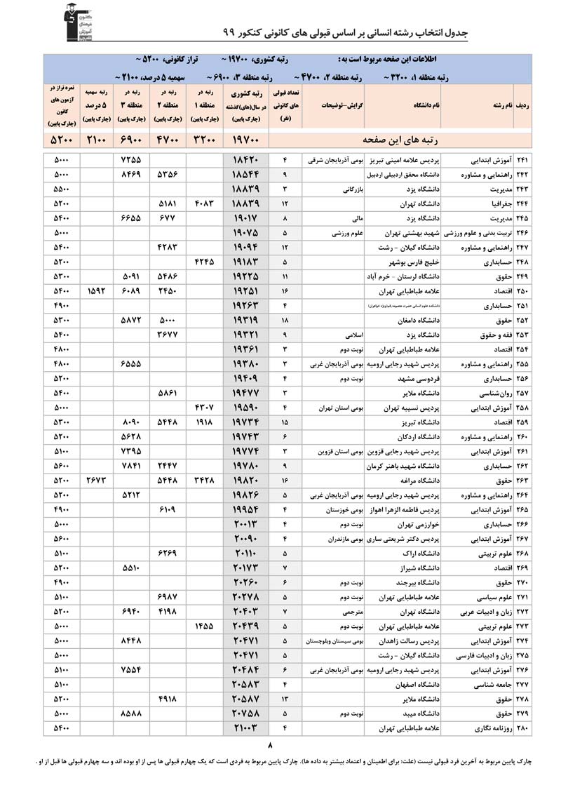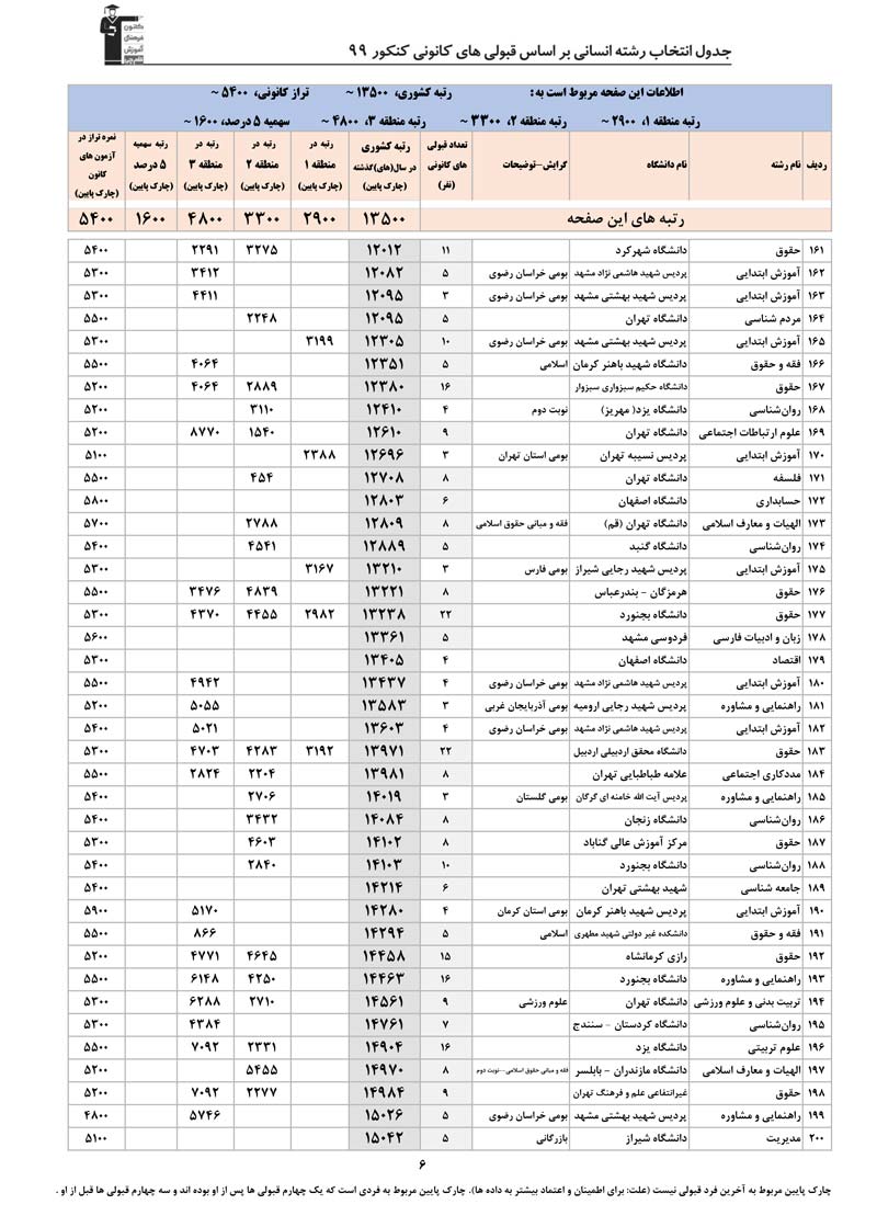 دانلود دفترچه انتخاب رشته انسانی : جدول ترازهای بالاتر از 5000