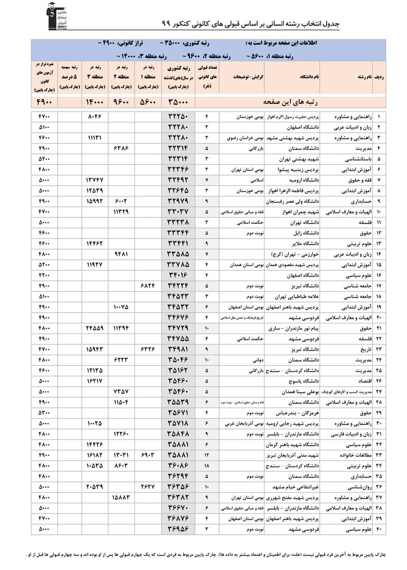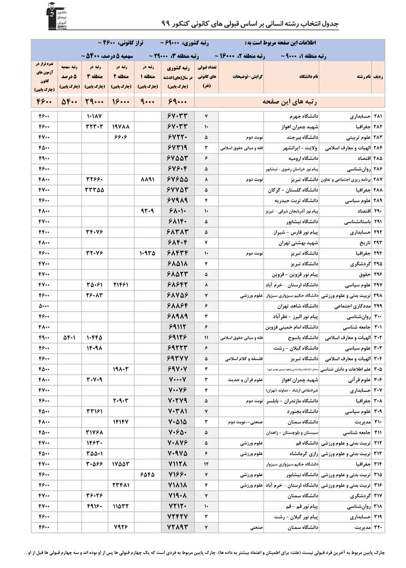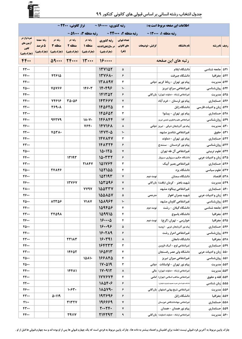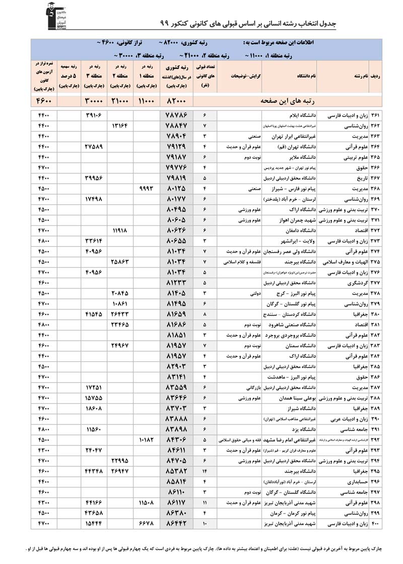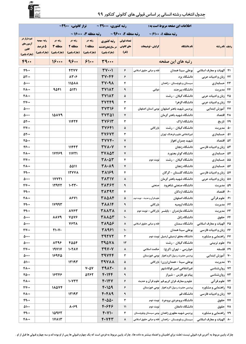 50 رشته را هم از صفحه های آخر در حد کف قابل قبول خودتان انتخاب کنید . ( کف قابل قبول یعنی آخرین رشته هایی که ترجیح می دهید امسال انتخاب کنید ویک سال پشت کنکور نمانید.)