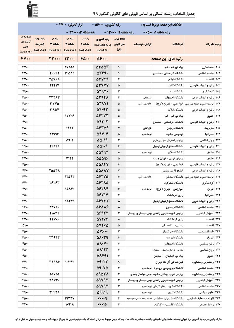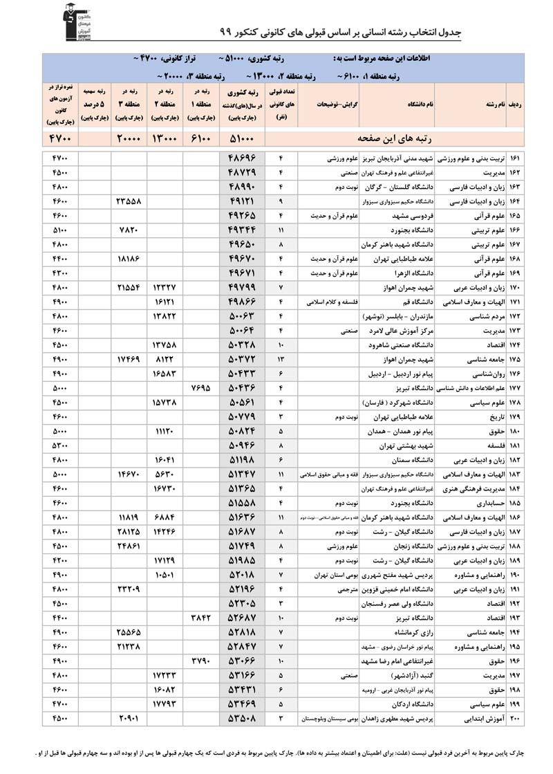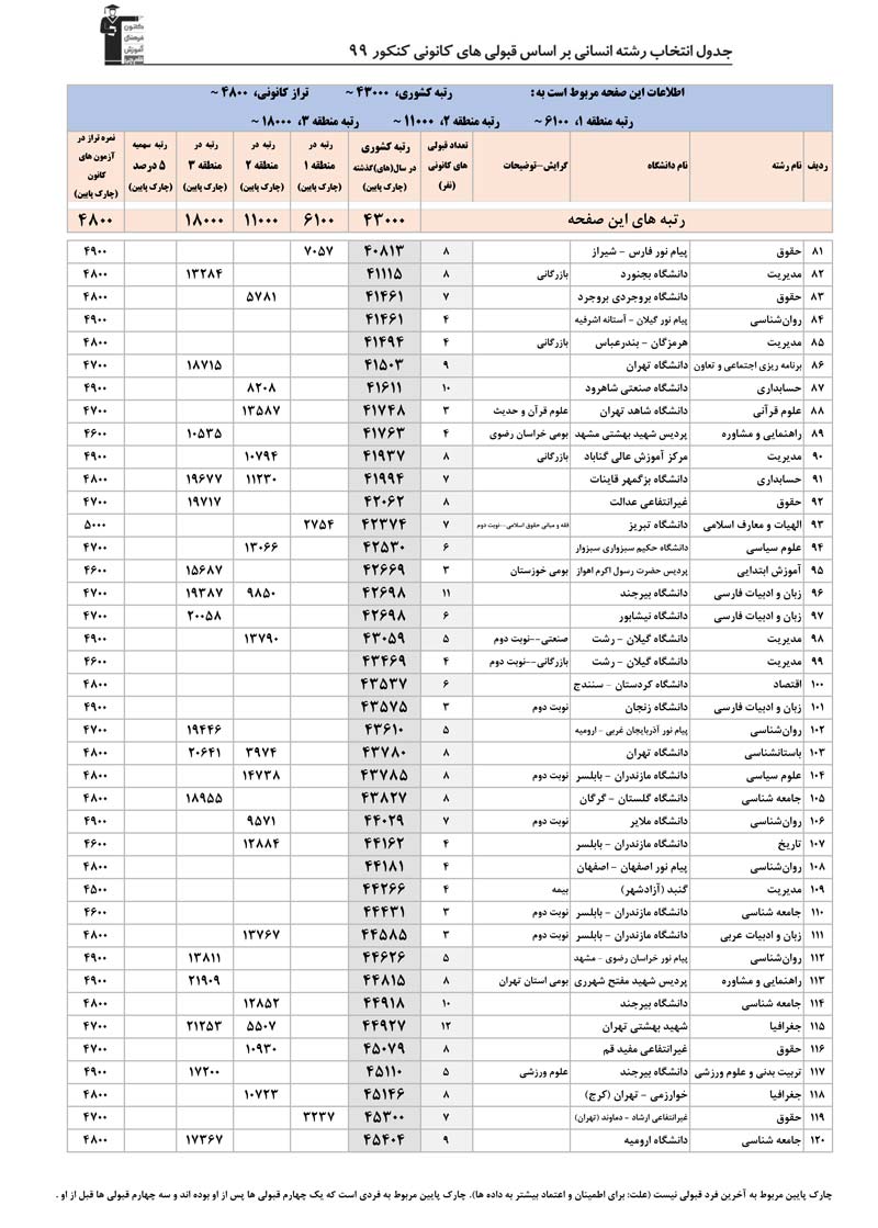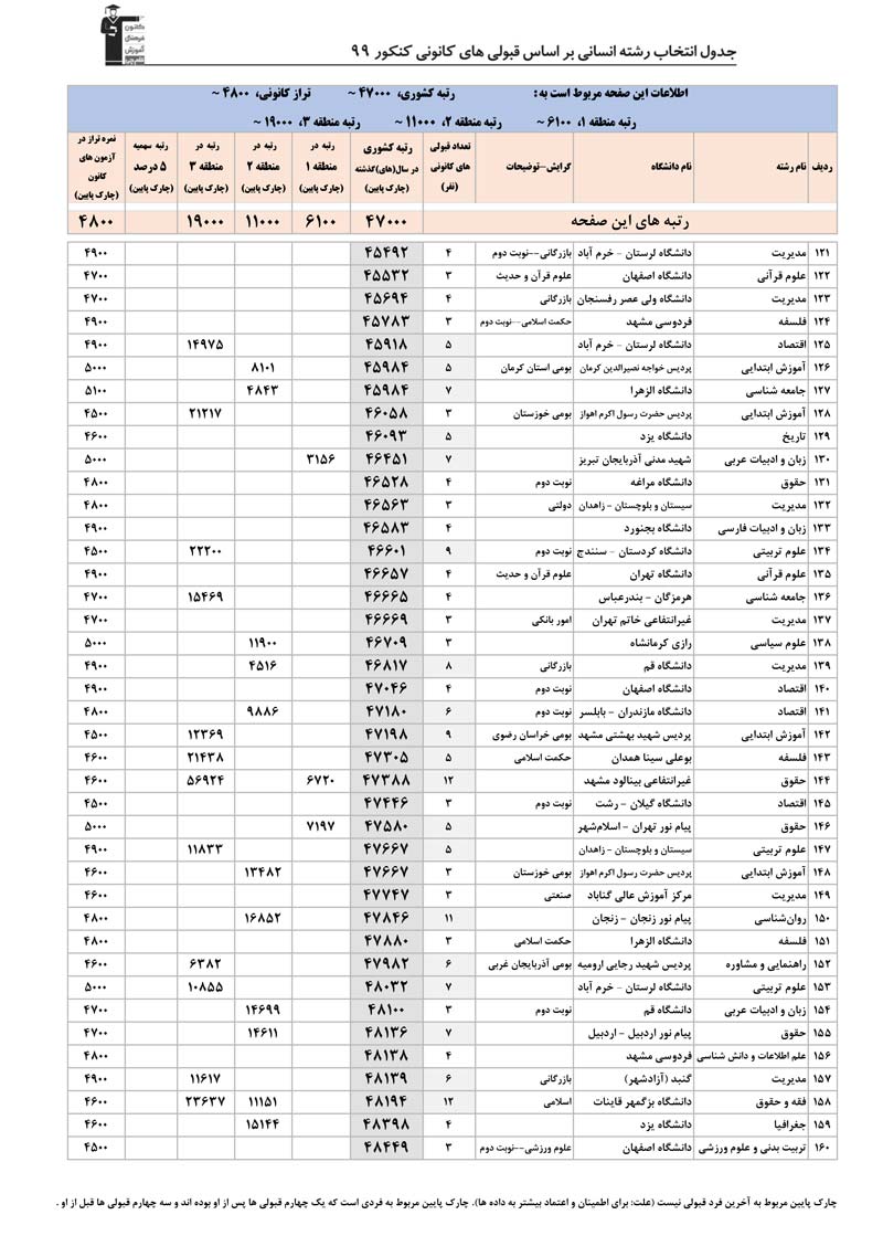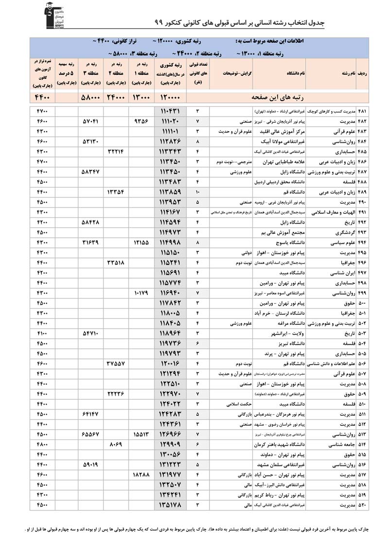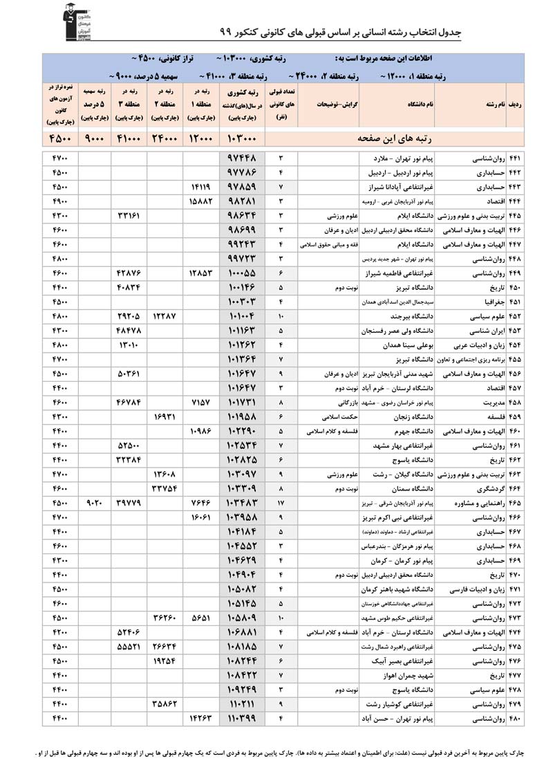 50 رشته را هم از صفحه های آخر در حد کف قابل قبول خودتان انتخاب کنید . ( کف قابل قبول یعنی آخرین رشته هایی که ترجیح می دهید امسال انتخاب کنید ویک سال پشت کنکور نمانید.)