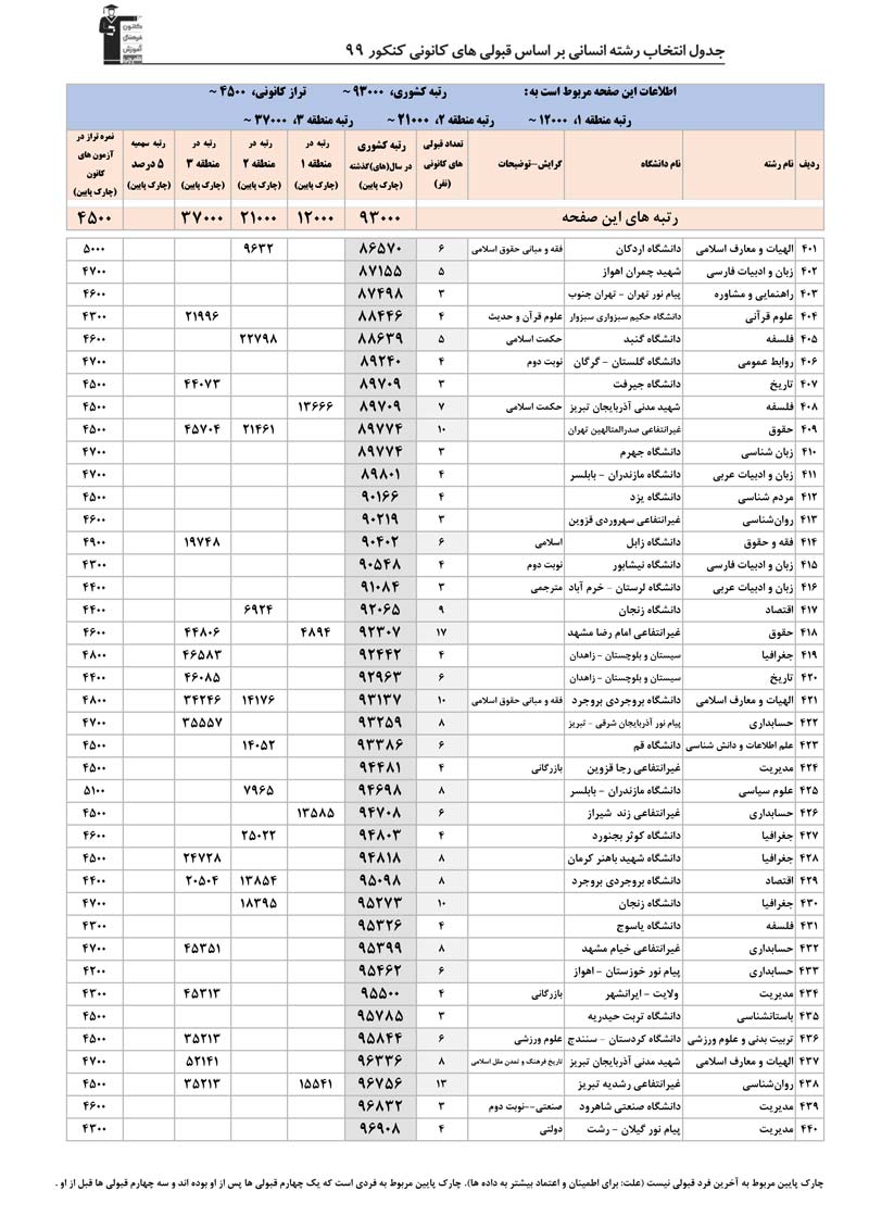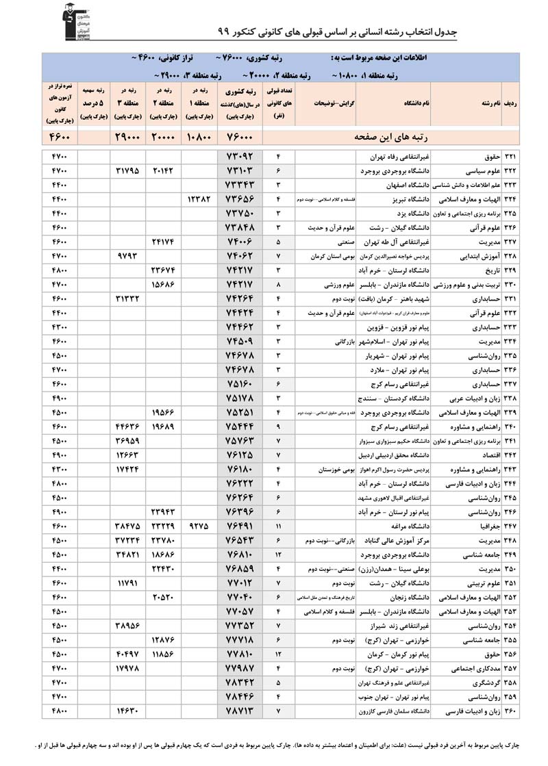 با این جدول ها به سادگی می توانید انتخاب رشته خود را اغاز کنید.