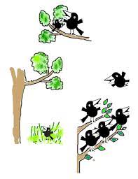 پنج کلاغ را دید که روی شاخه ای نشسته اند گفت :” چرا نشسته اید که جوجه کلاغه از بالای درخت افتاده.“ کلاغ ها هم پرواز کردند تا بقیه را خبر کنند .