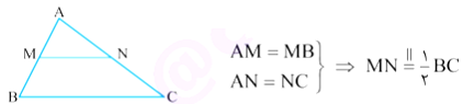 میان خط در مثلث : پاره خطی که وسط های دو ضلع از مثلثی را به هم وصل میکند که موازی و مساوی نصف ضلع سوم است و بلعکس.