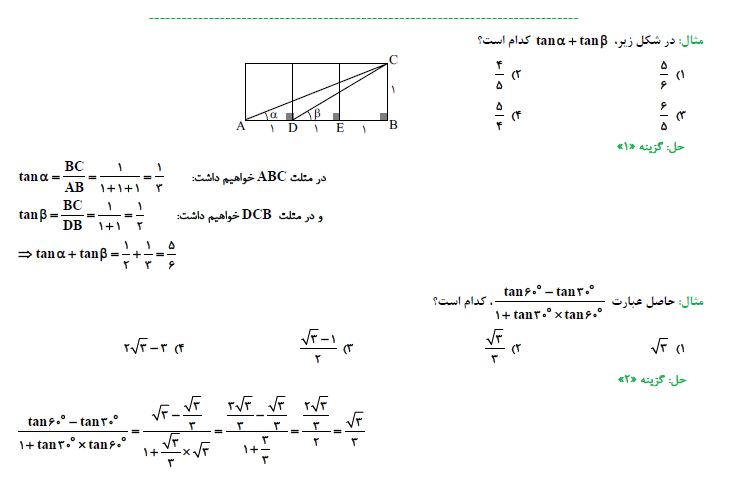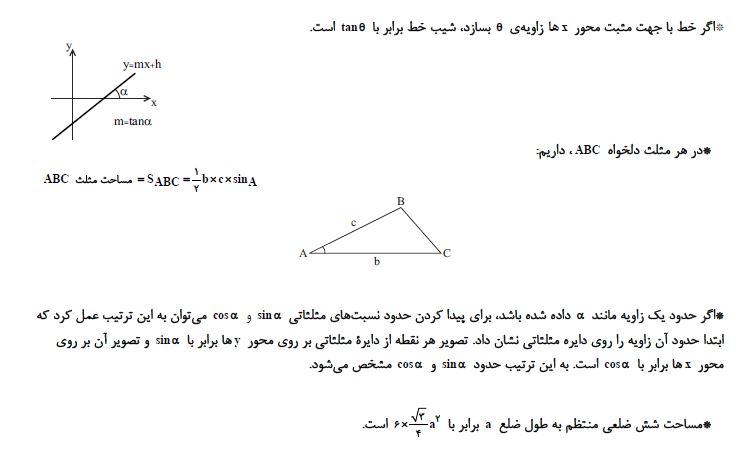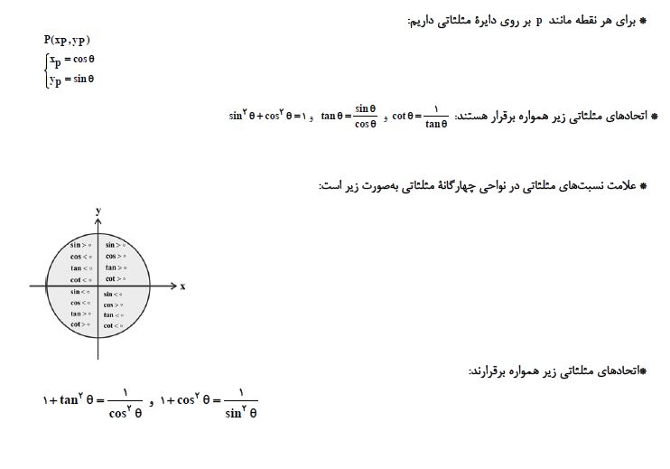 دوستان دهمی سلامدر این مطلب چندتا از نکات مربوط به مثلثات به همراه مثال از کتاب آبی آمده است. برای دیدن مثالهای بیشتر به کتاب آبی ریاضی دهم کانون مراجعه کنید.