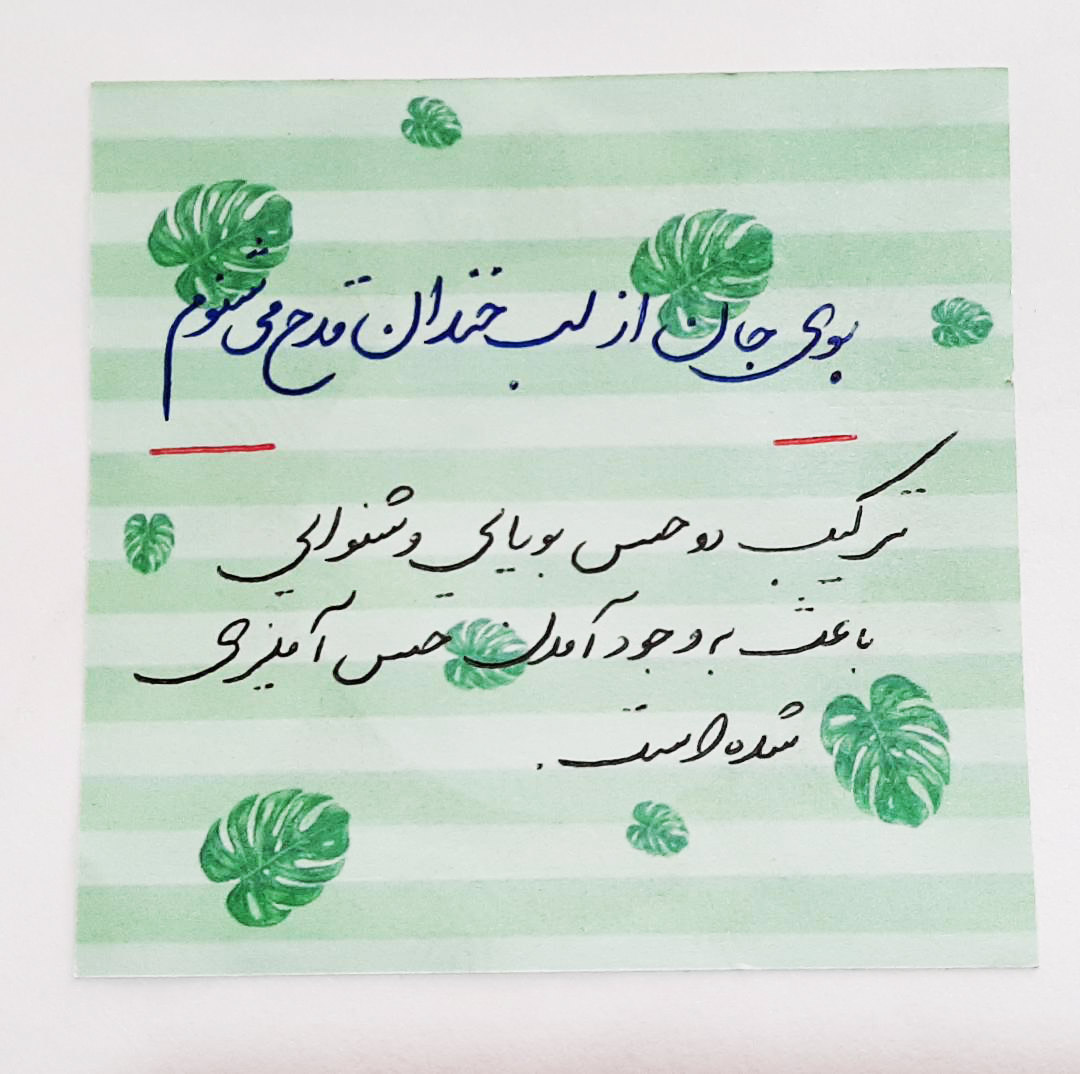 پاسخ کامنت فاطمه اخلاقی فتح آباد، تجربى نظام جدید - کرمان - میانگین تراز 5903 : بله بخت روشن مثل عادت سبز و مربوط به حسها معنوی و نوعی حس آمیزی هست _ تاریخ ثبت: 13990309 ثبت شده در صفحه مقطع : دهم