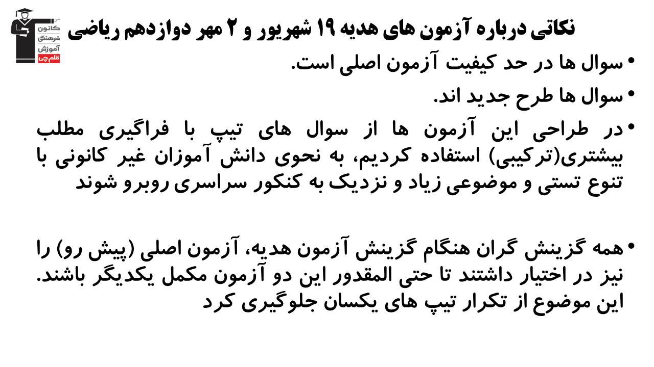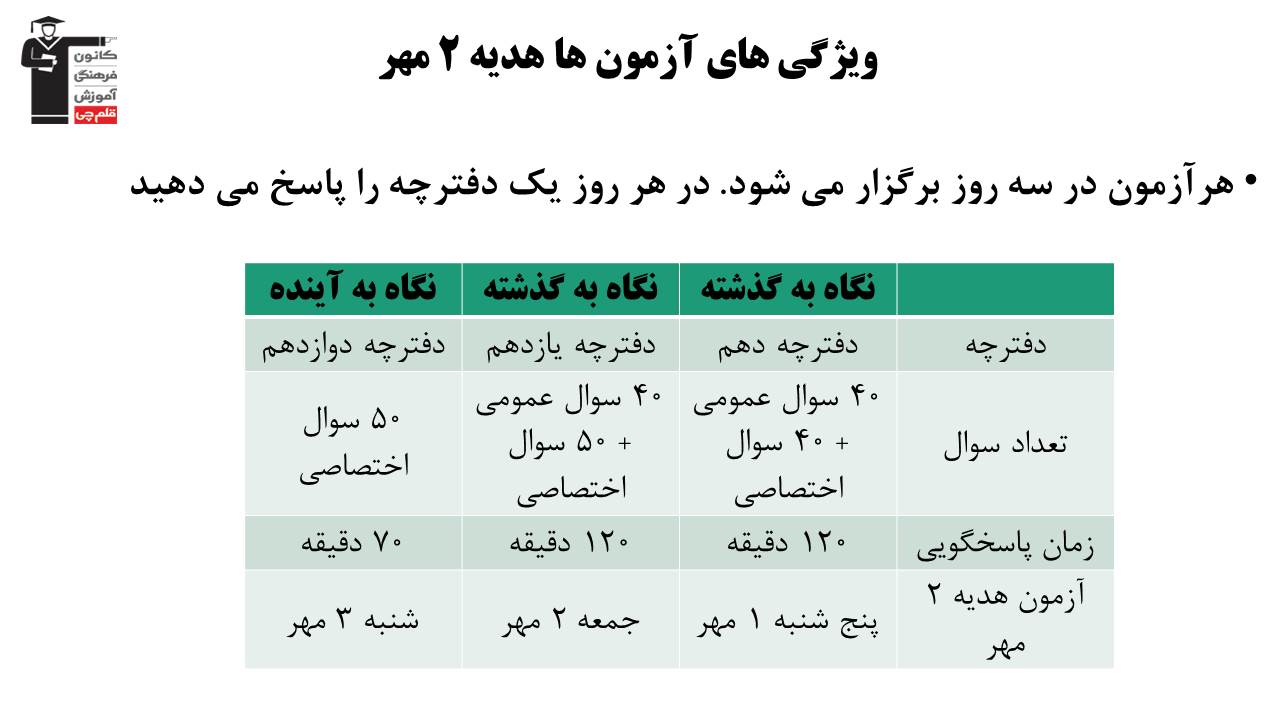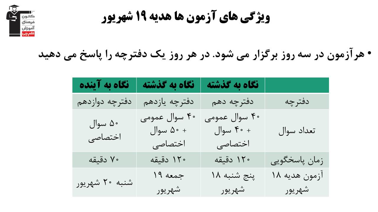 برنامه آزمون هدیه 19 شهریور-2مهر