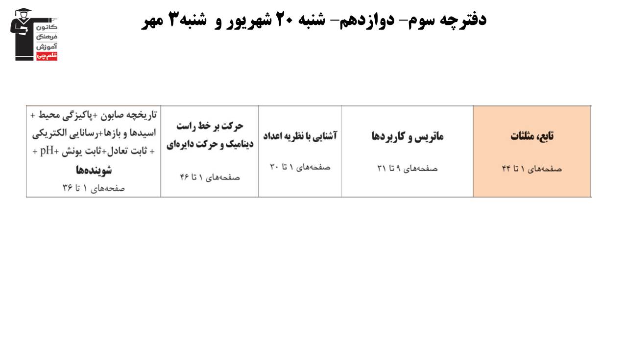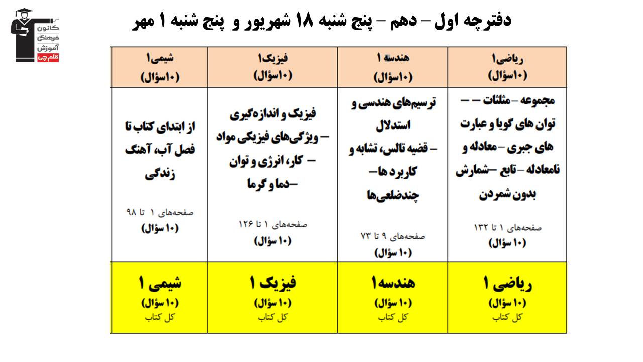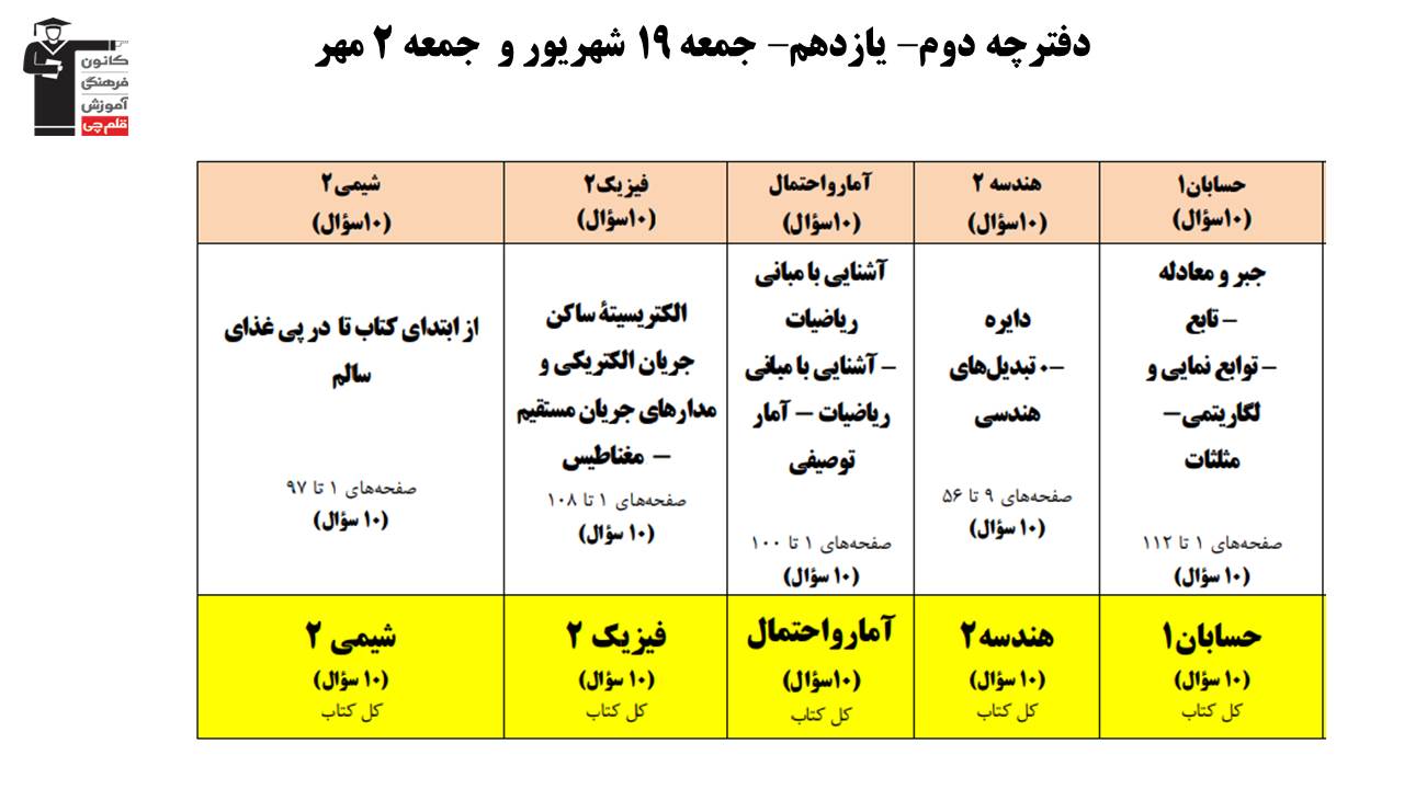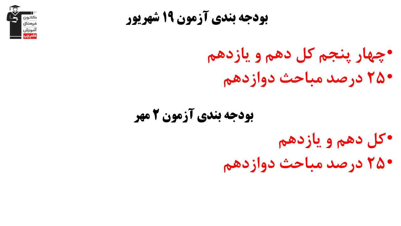 برنامه آزمون هدیه 19 شهریور-2مهر