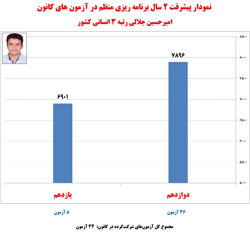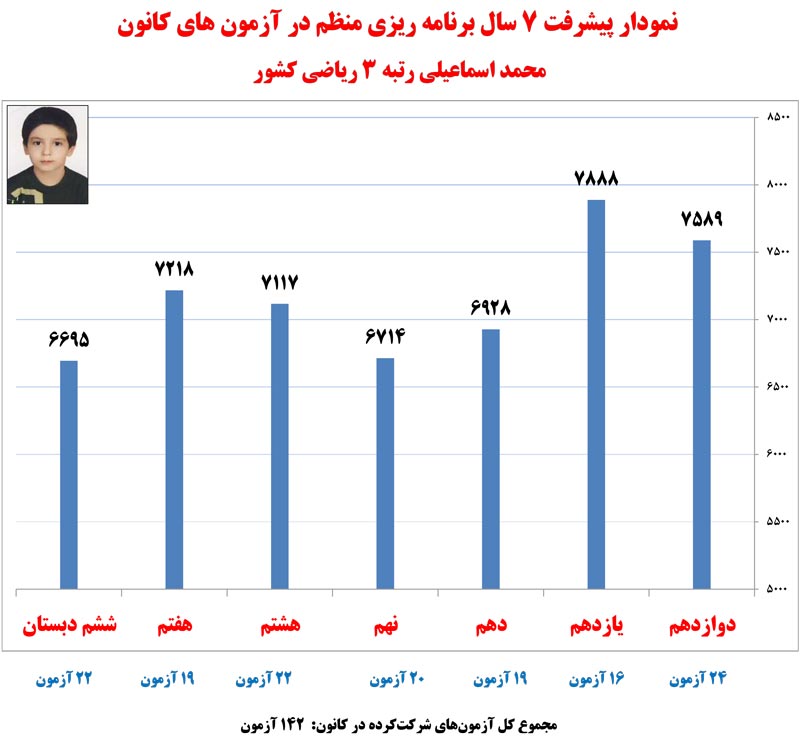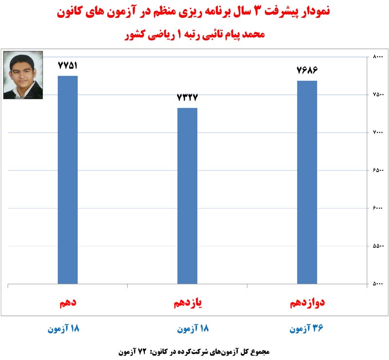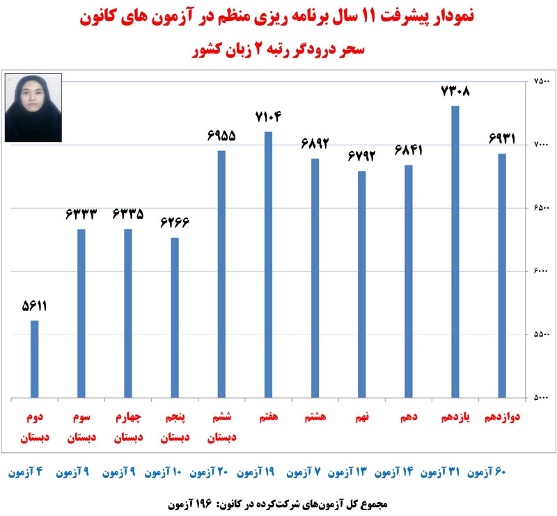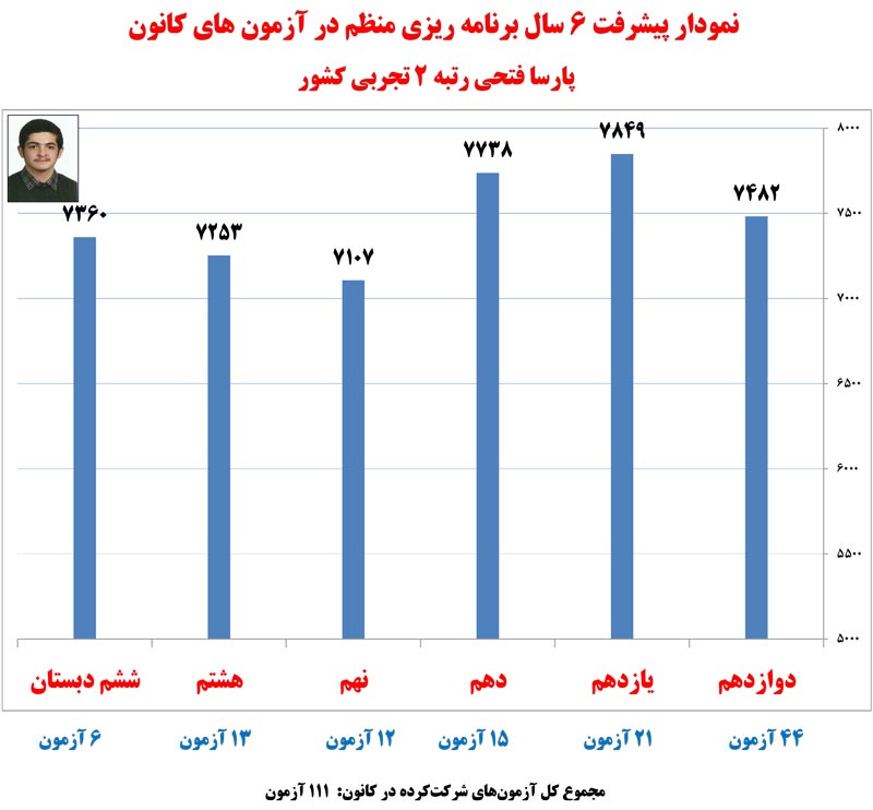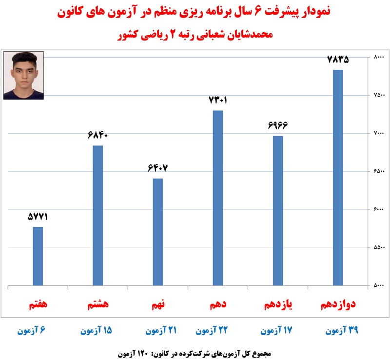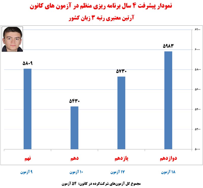 در ادامه نمودار های پیشرفت رتبه های برتر کنکور 1400 که در آزمون های برنامه ای کانون شرکت کرده اند را مشاهده کنید.