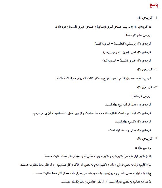 ششمی های عزیز سلامدر ادامه برای شما 10 سوال فارسی ششم برای آمادگی آزمون 29 مرداد به همراه پاسخ تشریحی آورده شده است. موفق باشید.فرزانه خاکپاش - گروه تولید آزمون