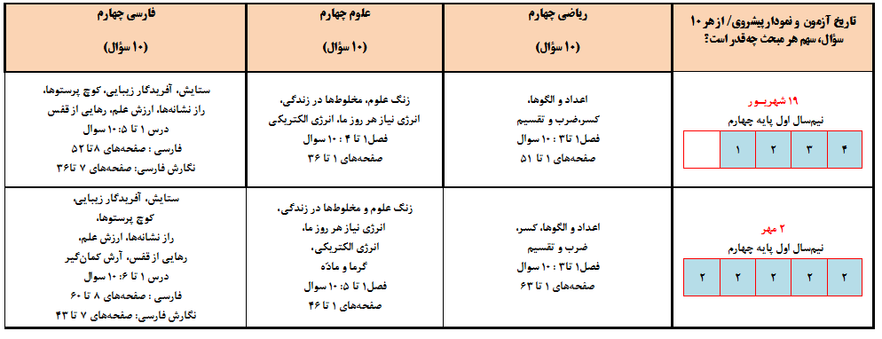 آزمون شامل دو بخش است، نگاه گذشته (سال سوم) برای همه دانش اموزان و نگاه به آینده (بخشی از سال چهارم)برای دانش آموزانی که در تابستان همراه با ما درس خوانده اند.