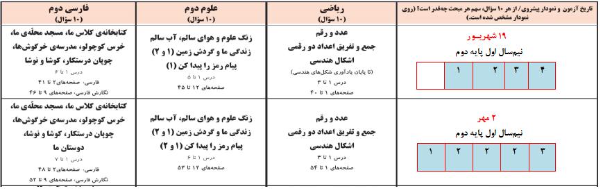دو آزمون هدیه برای کلاس دومی ها که از مهر به کلاس دوم می روند.