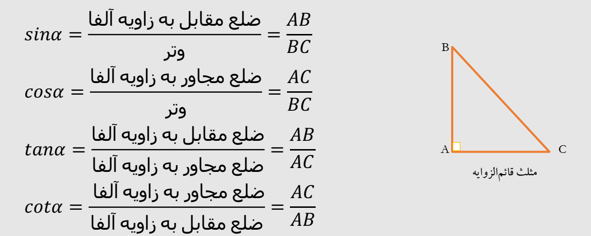 2.رابطه بین اضلاع و دو زاویه مثلث: