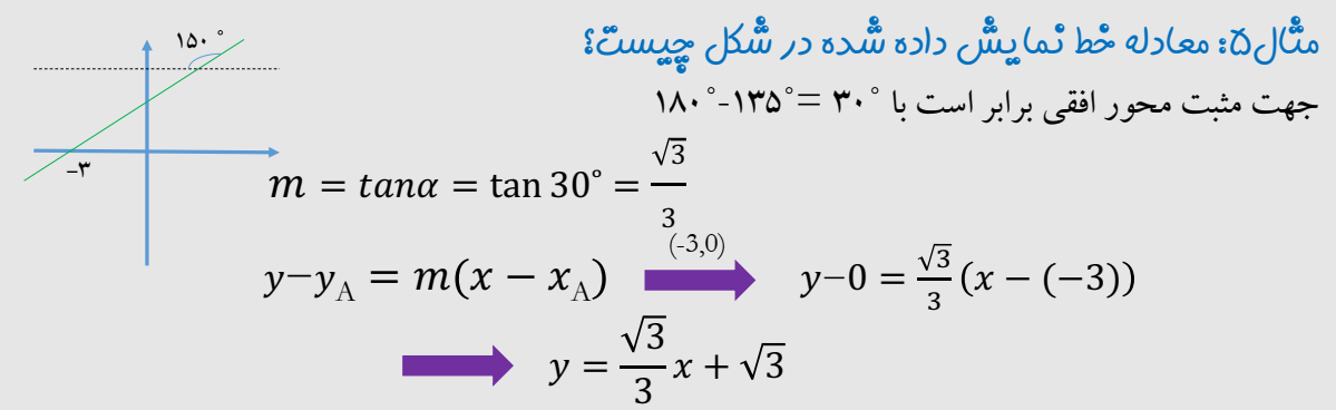 شیب هر خط که محور افقی را قطع میکند برابر است با تانژانت زاویه بین آن خط و جهت مثبت محور افقی. به عبارت دیگر، اگرα زاویهای باشد که خط با جهت مثبت محورافقی میسازد، آنگاه: