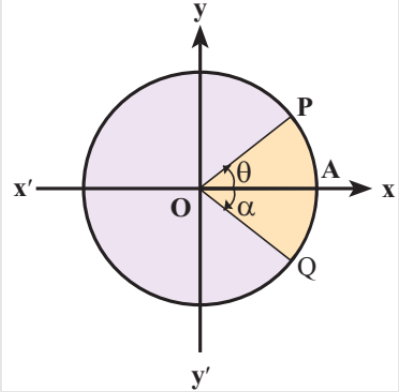 دایرهای به شعاع 1 واحد و به مرکز مبدا مختصات را دایره مثلثاتی مینامند. اگر P نقطهای روی این دایره باشد و در خلاف جهت حرکت عقربههای ساعت حرکت کنیم، زاویهی AOP را مثبت در نظر میگیریم و اگر در جهت حرکت عقربههای ساعت حرکت کنیم، زاویهیAOP را منفی در نظر میگیریم.