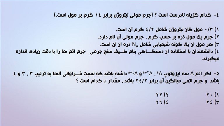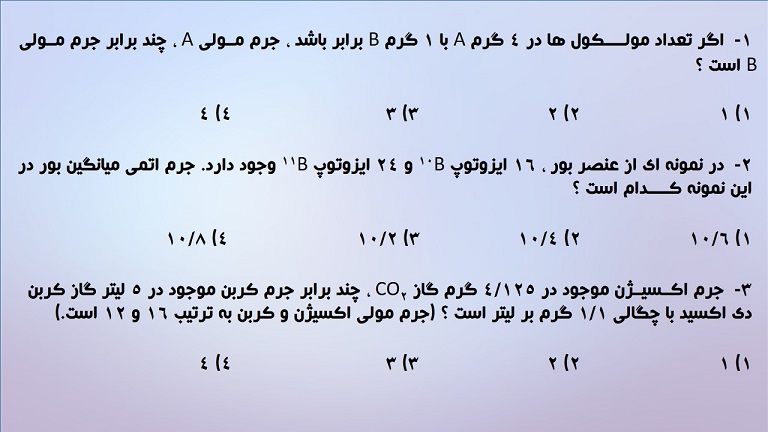 سلام به دانشآموزان عزیز آزمونک زیر از مباحث آزمون 29 مرداد و برای آمادگی و سنجیدن خود در این آزمون است. بعد از حل آنها فیلم آموزشی توضیحات حل سوالات توسط استاد سروش عبادی را میتوانید از قسمت پایین دانلود کنید.