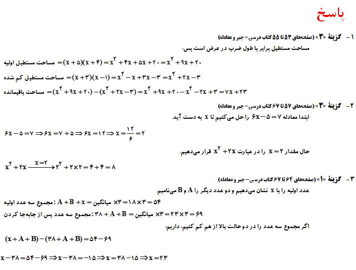 3 سوال از جبر و معادله - ریاضی هشتم - ندا صالح پور