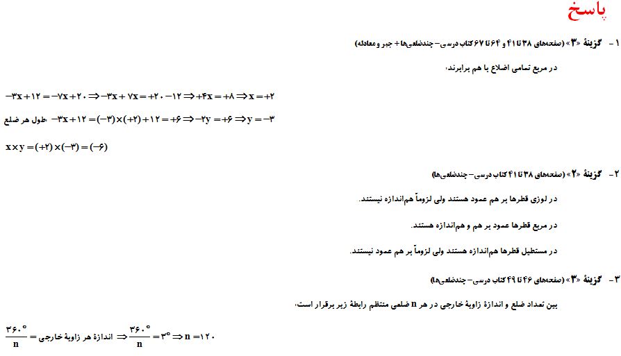 سوالات چندضلعی‌ها - ریاضی هشتم - محمدرضا ششبری