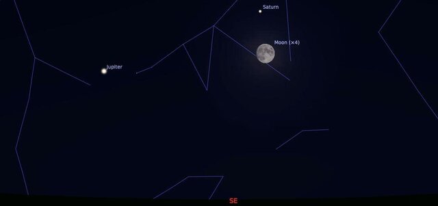 همچنین اگر در روز ۲۰ اوت (۲۹ مرداد) به سمت جنوب شرقی نگاه کنید میتوانید ماه را زیر حلقهی زحل ببینید. در سمت چپ نیز سیارهی مشتری قابل رویت خواهد بود. بهتر است برای تماشای آنها از تلسکوپ استفاده کنید.
