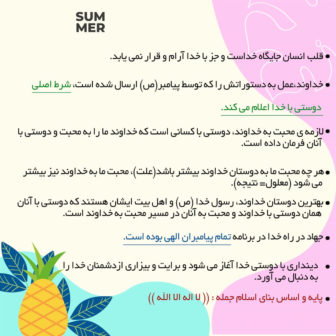 10 . بهترین دوستان خداوند، رسول خدا (ص) و اهل بيت ایشان هستند كه دوستی با آنان همان دوستی با خداوند و محبت به آنان در مسير محبت به خداوند است.