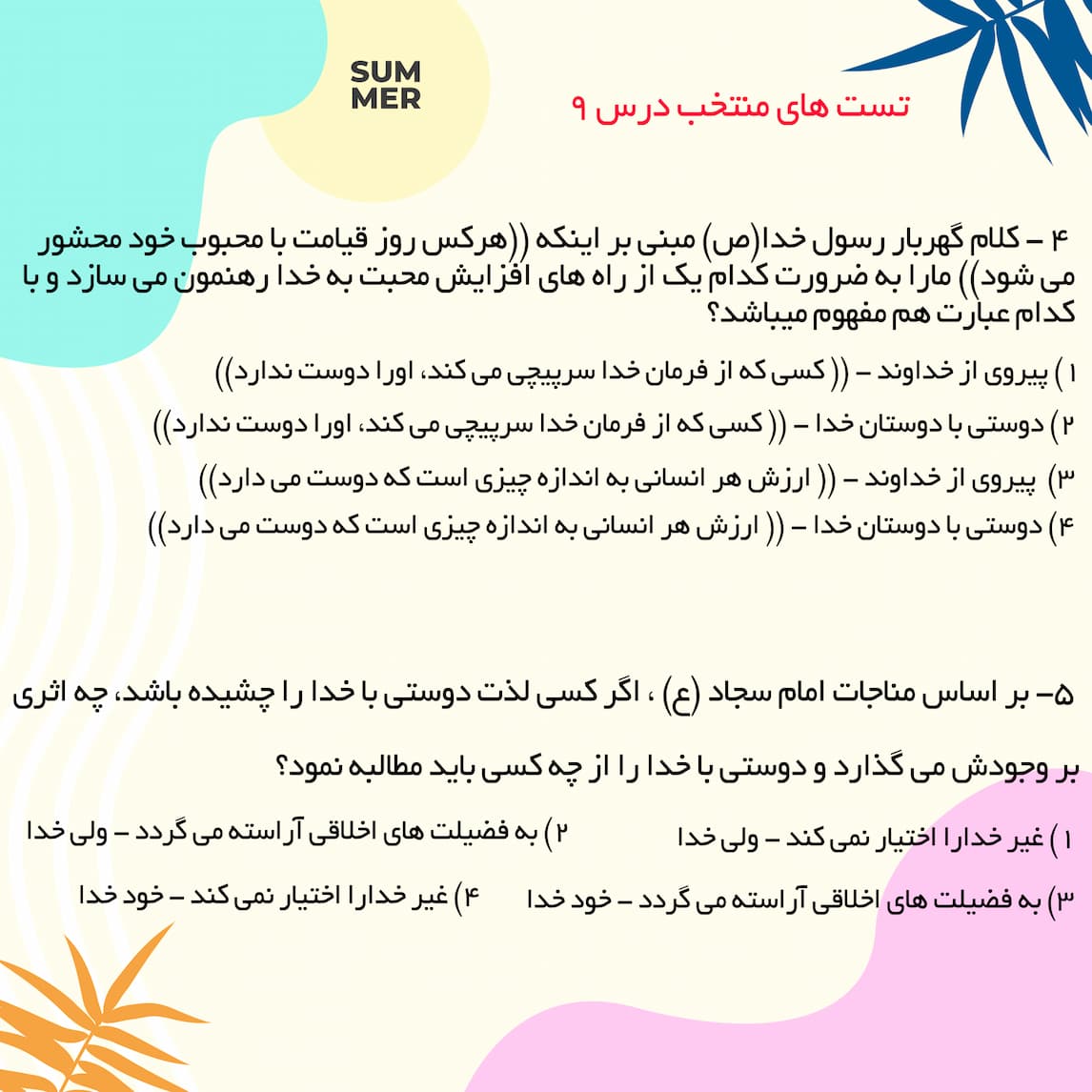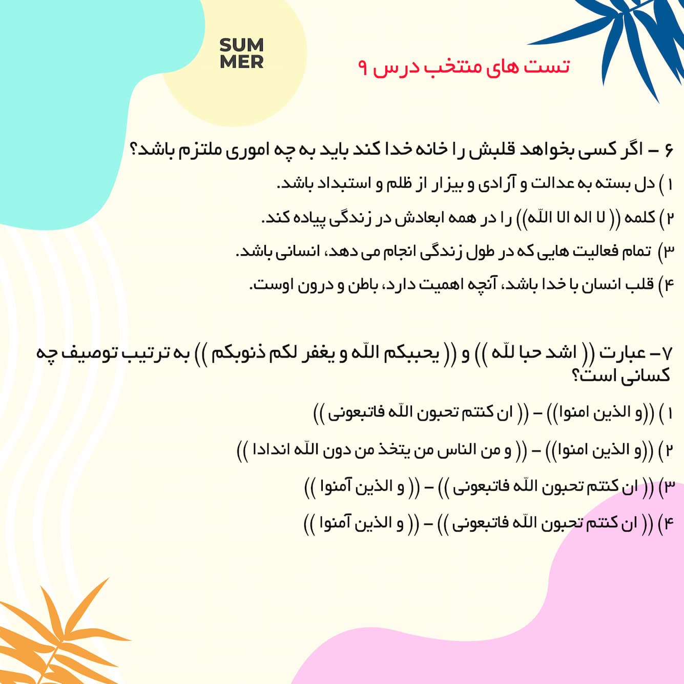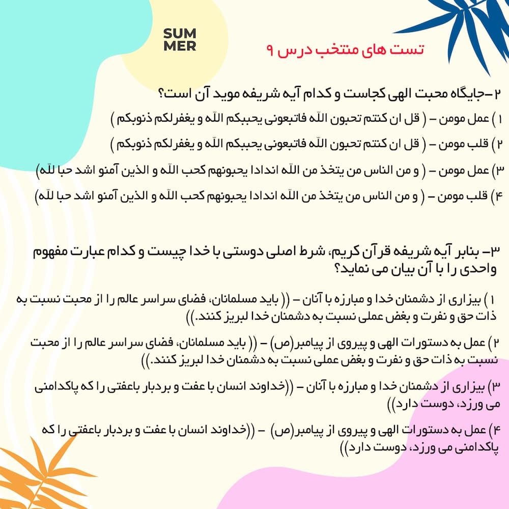 خلاصه درسنامه و تست های منتخب درس 9 دینی پایه دهم منطبق بر آزمون 5 آذر رو میتوانید در این مطلب مطالعه کنید.