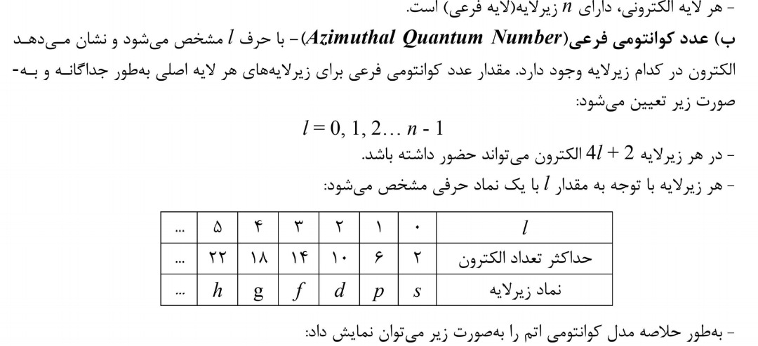 درسنامه ای کوتاه از فصل 1 کتاب شیمی دهم تجربی ( اعداد کوانتومی اصلی و فرعی و ... ) تهیه شده توسط دکتر امیر حاتمیان