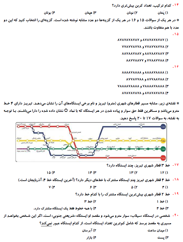 در ادامه برای شما 20 سوال سرعت و دقت برای آمادگی آزمون 12 شهریور آورده شده است. این سوالات را پاسخ دهید و سپس پاسخ خود را با فایل پی دی اف که بعد از سوالات برای شما قرار داده شده است مقایسه کنید.