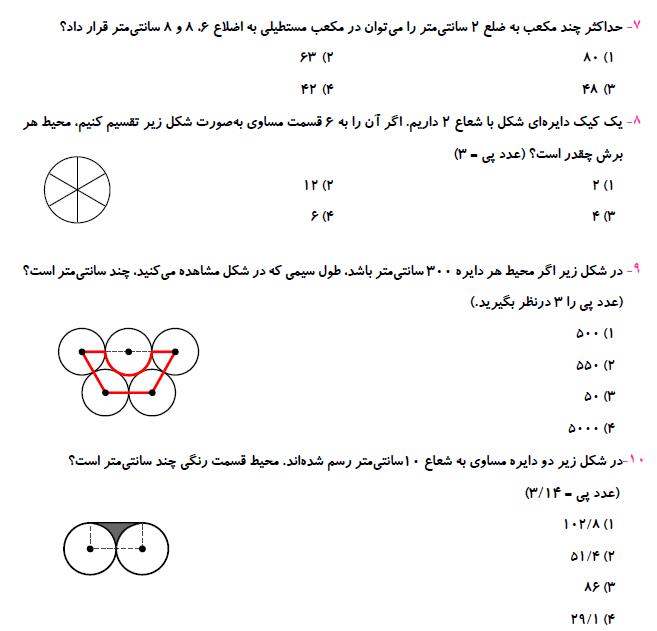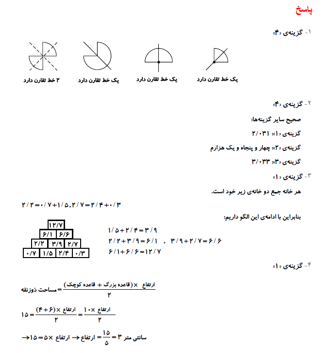 ششمی های عزیز سلامدر ادامه برای شما 10 سوال ریاضی پنجم برای آمادگی آزمون 12 شهریور به همراه پاسخ تشریحی آورده شده است. موفق باشید.فرزانه خاکپاش - گروه تولید آزمون
