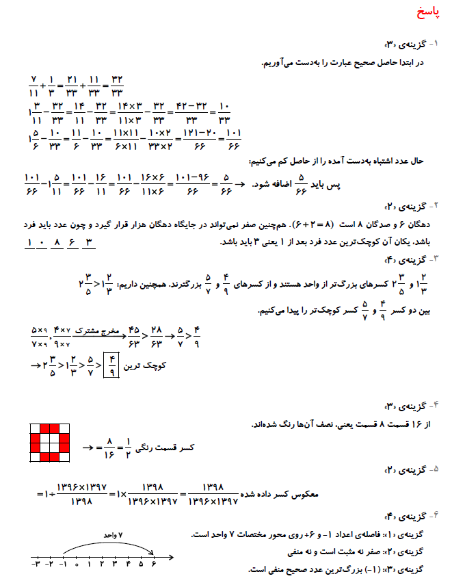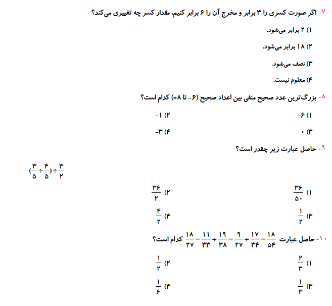 ششمی های عزیز سلامدر ادامه برای شما 10 سوال ریاضی ششم برای آمادگی آزمون 12 شهریور به همراه پاسخ تشریحی آورده شده است. موفق باشید.فرزانه خاکپاش - گروه تولید آزمون