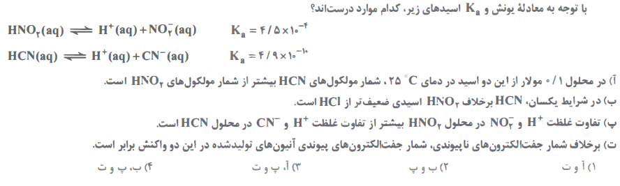 نکته: در کربوکسیلیک اسیدها تنها هیدروژن گروه کربوکسیل آن ها می تواند به صورت یون هیدرونیوم وارد محلول شود.