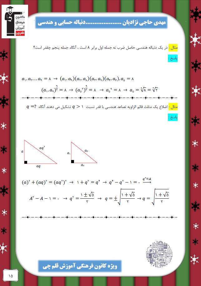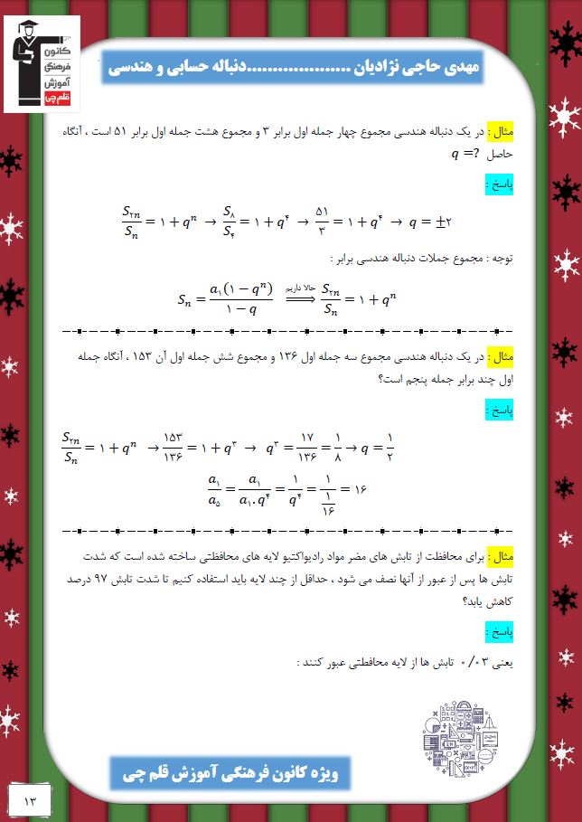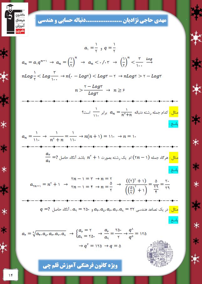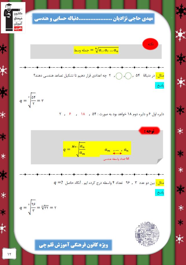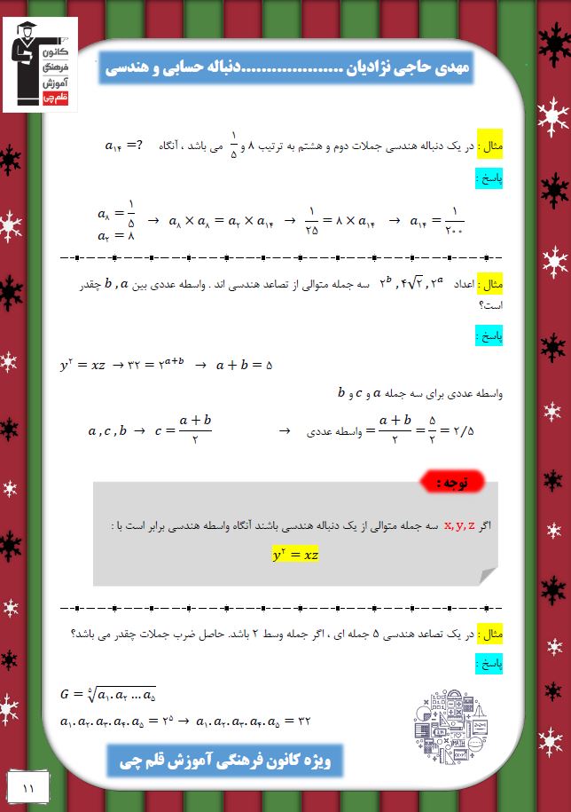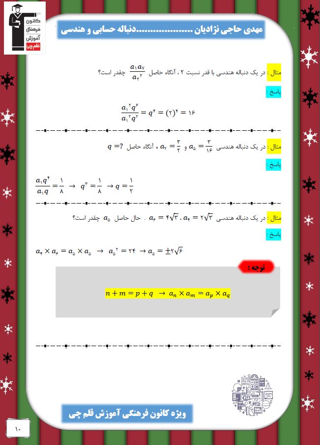 درسنامه آموزشی ریاضیات دهم و یازدهم بحث دنباله حسابی و هندسی