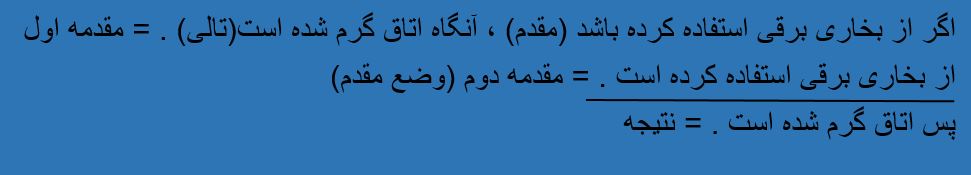 1)اگر این قلم می نویسد ، پس جوهر دارد . قلم جوهر دارد ؛ پس می نویسد .