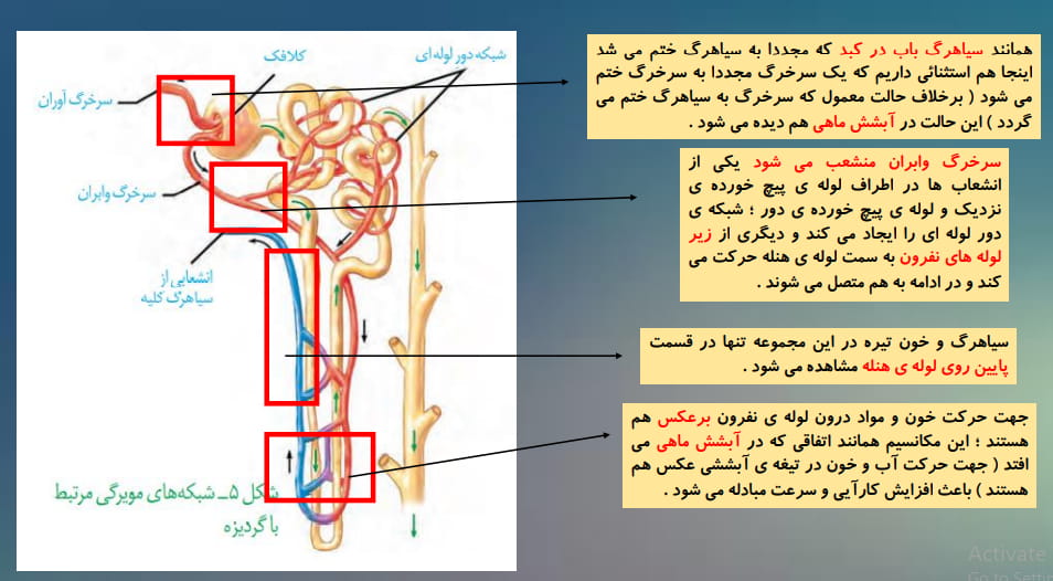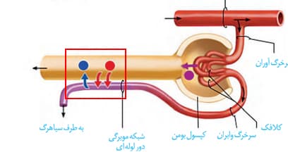 طبق شکل کتاب می توان نتیجه گرفت که در شبکه ی مویرگی دور لوله ای ؛ (به صورت تقریبی ) مقدار بازجذب دو برابر مقدار ترشح است .