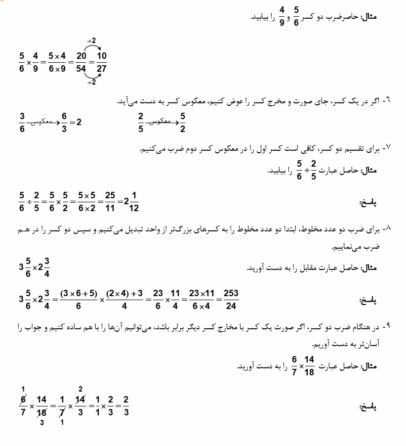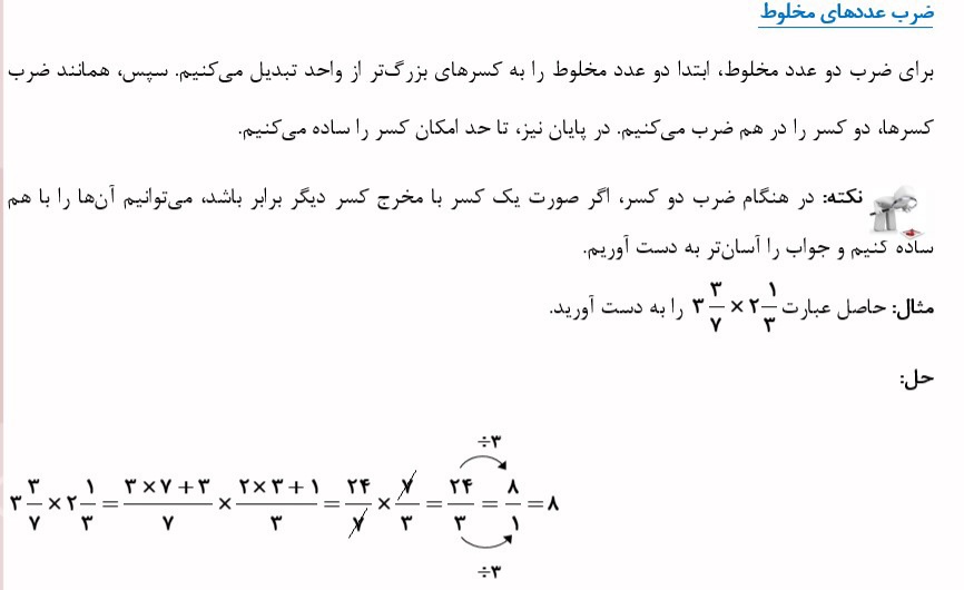 دانش آموزان عزیز سلام در این بخش نکات فصل ۲ ریاضی و ضرب عدد های مخلوط برای شما آورده شده است .موفق باشید .