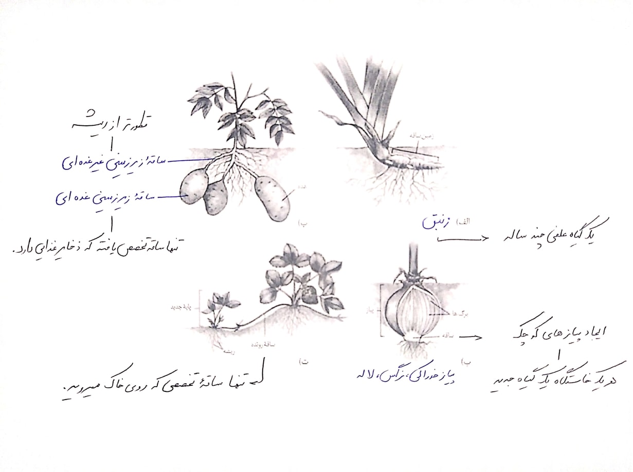 - بخش خورکی سیب زمینی -> ساقه تخصص یافته