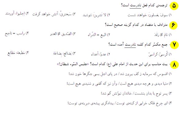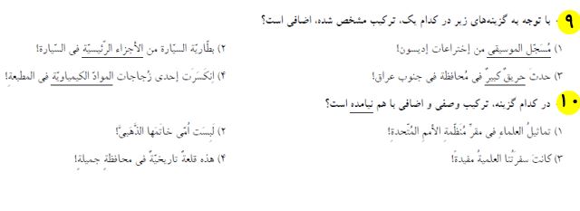 10 سوال عربی که در ادامه برای شما قرار دادیم، از مباحث نگاه به گذشته آزمون 12 شهریور بوده و برای آمادگی بیشتر شما در این آزمون تهیه شده است. بعد از مطالعه ی کتاب درسی و درسنامه های آمادگی آزمون 12 شهریور، توصیه میکنم حتما این سوالات را حل کرده و جواب های خود را با پاسخنامه بررسی کنید