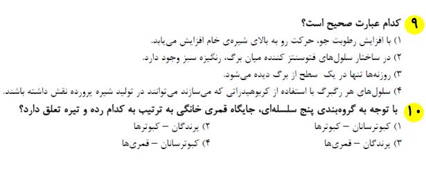 10 سوال علوم که در ادامه برای شما قرار دادیم، از مباحث نگاه به گذشته آزمون 12 شهریور بوده و برای آمادگی بیشتر شما در این آزمون تهیه شده است. بعد از مطالعه ی کتاب درسی و درسنامه های آمادگی آزمون 12 شهریور، توصیه میکنم حتما این سوالات را حل کرده و جواب های خود را با پاسخنامه بررسی کنید.