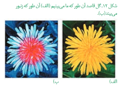 - گیرنده های نوری چشم مرکب برخی حشرات -> توانایی دریافت نور فرابنفش را دارند. مثل زنبور