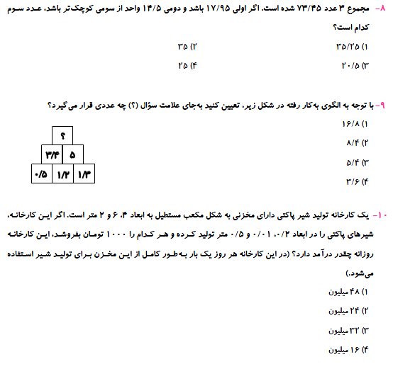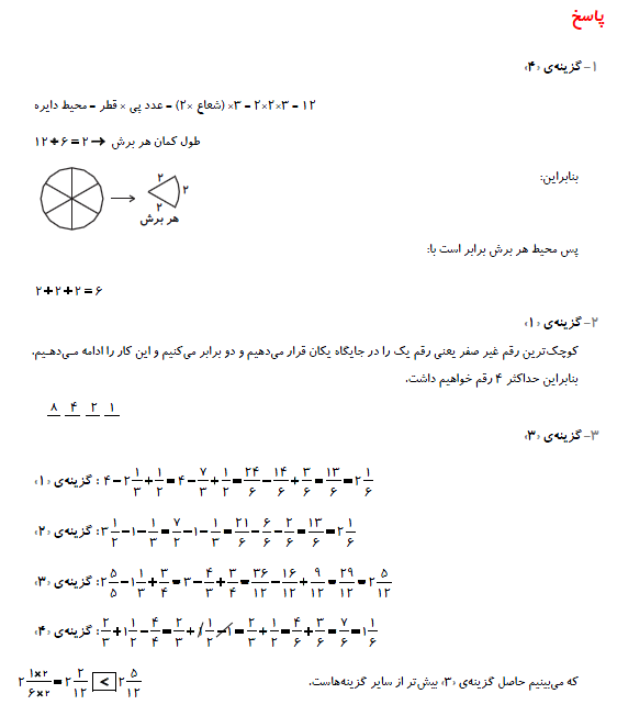 ششمی های عزیز سلامدر ادامه برای شما 10 سوال ریاضی پنجم برای آمادگی آزمون 26 شهریور به همراه پاسخ تشریحی آورده شده است. موفق باشید.فرزانه خاکپاش - گروه تولید آزمون