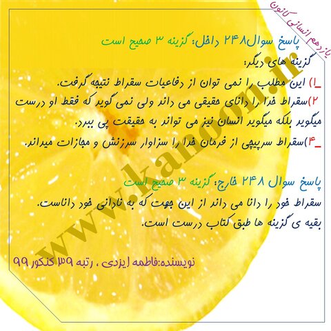 تست ۲۴۸ کنکور۹۹ داخل و تست ۲۴۸ کنکور ۹۹ خارج