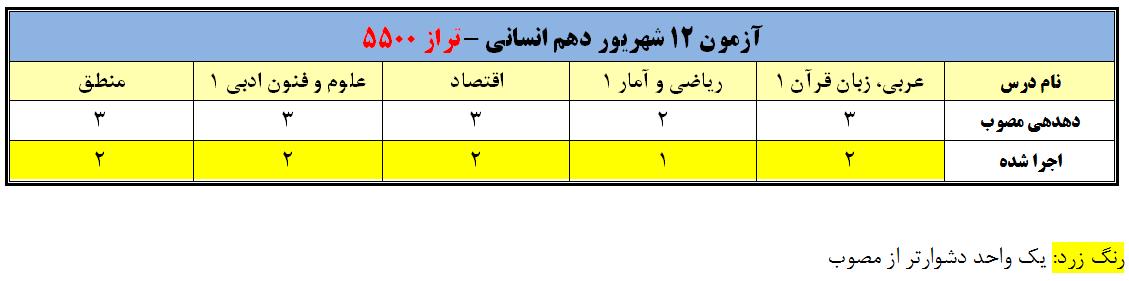 تحلیل دروس دهم انسانی آزمون 12 شهریور (تراز 5500)