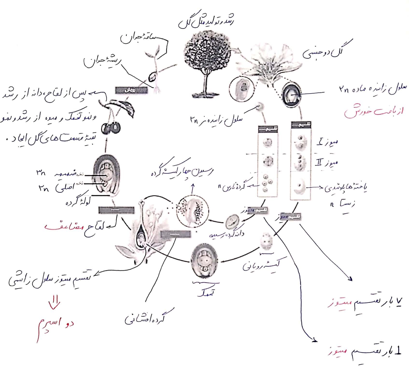 -- دوره ی تولید گل و میوه در یک سال انجام می شود.