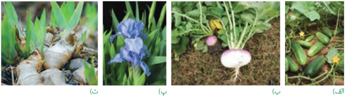 - در شکل ب دقت کنید که بخش تورم یافته شلغم ریشه آن است و برخلاف سیب زمینی، ساقه نیست!