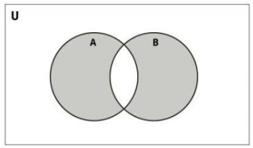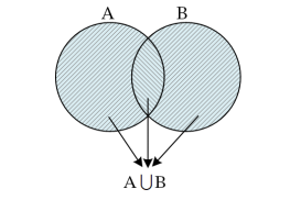 •اجتماع دو پیشامد: اگر A و B دو پیشامد از فضای نمونهای Sباشند، پیشامد A∪B ، در صورتی اتفاق میافتد که A یا B یا هر دو اتفاق بیفتند. (حداقل یکی از دو پیشامد A یا B رخ دهند.)