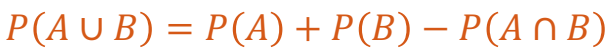 2. احتمال آنکه حداقل یکی از دو پیشامد A یا B (A یا B و یا هر دو)رخ دهد، برابر است با: