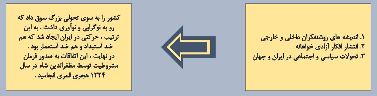 در پی آن ، تحصیل کردگان و روشنفکران ایران ، همگام با تغییرات فرهنگی ، اجتماعی و اقتصادی ، بیداری جامعه ایران را سرعت بخشیدند .